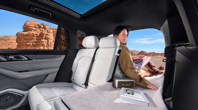 除了静态的舒适,2026款领克09四驱探索版在空间的灵活性上也花了不少心思。它的后排座椅可以灵活放倒,在标准5座模式下,后备箱容积为691升,足以容纳全家出行的行李。当二排座椅完全放倒后,储物空间可以扩展至1522升,形成一个纵深可观的空间,铺上床垫后秒变“移动大床房”,对于喜欢露营或长途自驾的用户来说,这个功能的实用性很高。此外,前排座椅靠背也能放倒,与二排坐垫连接成一张“双人沙发床”,为车内休憩提供了另一种可能。这种对空间多种使用场景的探索,让这辆大五座SUV不再仅仅是一个交通工具,而是能适应更多元生活方式的伙伴。